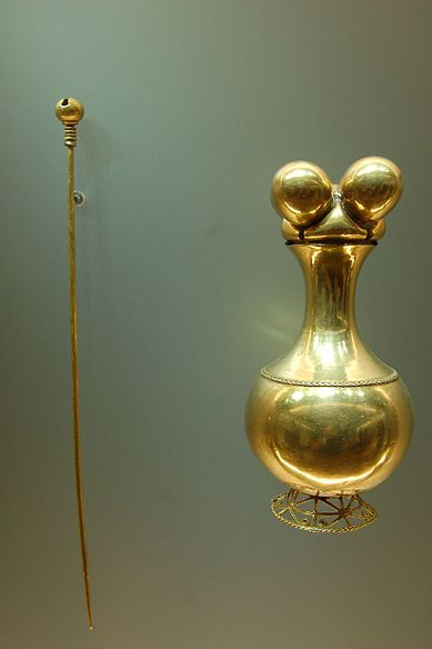 Un Poporo quimbaya, servant à broyer les feuilles de coca avec de la chaux (Bogota, Musée de l’or).