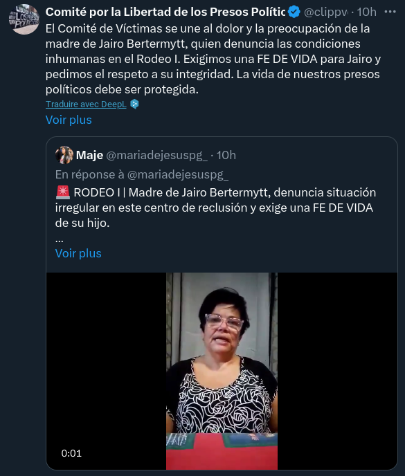 En déposant la plainte, l‘Observatorio Venezolano de Prisiones (Observatoire vénézuélien des prisons) et le Comité pour la liberté des prisonniers politiques (CLPP) soulignent dans une déclaration que le prisonnier « a souffert de douleurs abdominales sévères qui avaient été mal diagnostiquées ». L’OVP affirme que la personne décédée « a reçu des soins médicaux tardifs et que les membres de sa famille n’ont pas reçu d’informations exactes sur son état de santé ».