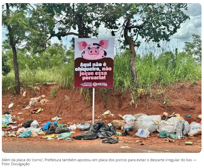 C’est la phrase qui illustre une affiche placée sur un terrain à Prata, dans le Triângulo Mineiro, et qui a eu des répercussions sur les réseaux sociaux après avoir été diffusée comme une initiative de la mairie visant à empêcher les résidents de jeter des déchets de manière irrégulière dans des zones non destinées à l’élimination. Selon le maire de Xexéu, Marcel Vieira Rodrigues da Cunha, l’initiative a déjà donné des résultats positifs.