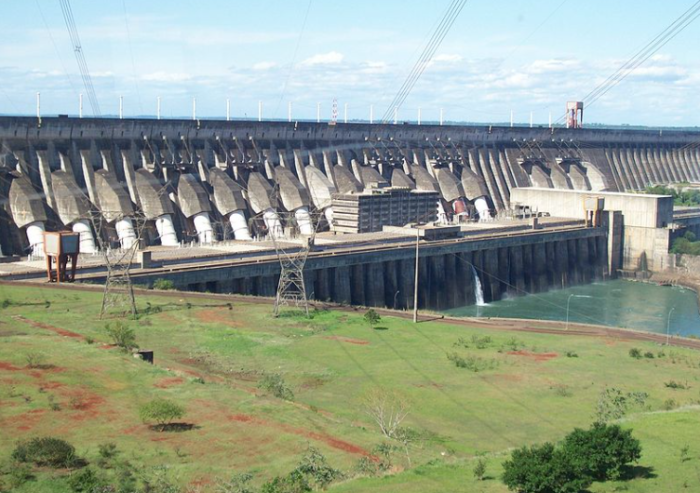 Le barrage d’Itaipu correspond à la centrale hydroélectrique d’Itaipu. Il est situé sur le rio Paraná, à la frontière entre le Brésil et le Paraguay et a été construit par les deux pays entre 1975 et 1982. La centrale est aujourd’hui la troisième au monde en puissance installée et reste la première en quantité cumulée d’énergie produite. Son nom signifie « la pierre qui chante » en guarani et fait référence à la petite île située sur le fleuve avant les travaux.