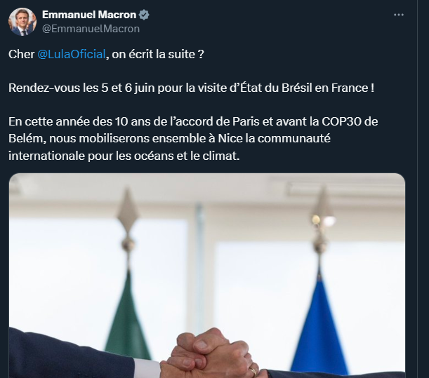 Le dirigeant brésilien participera également à ce que l’on appelle la COP des océans, la conférence des Nations unies sur les océans, à Nice.