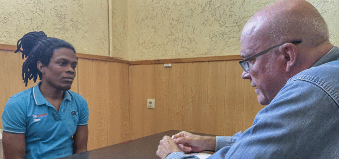 À gauche, Frank Dario Jarrosay Manfuga, musicien cubain recruté par l’armée russe et actuellement détenu par l’Ukraine, s’entretient avec Orlando Gutiérrez Boronat, secrétaire général de l’Assemblée de la résistance cubaine (ARC).